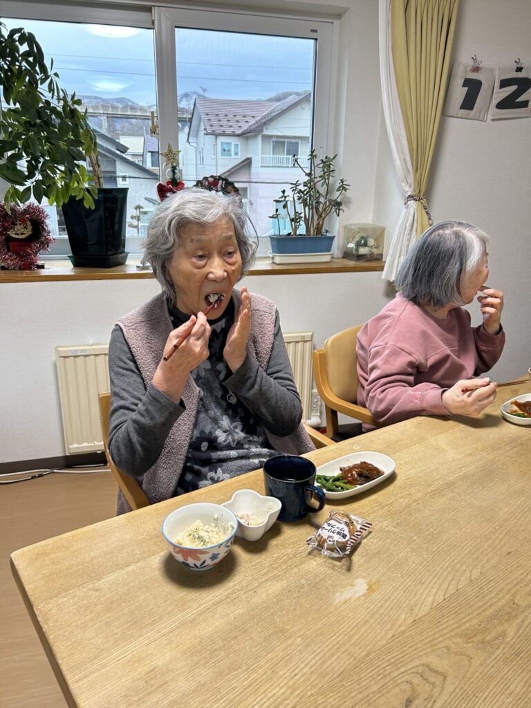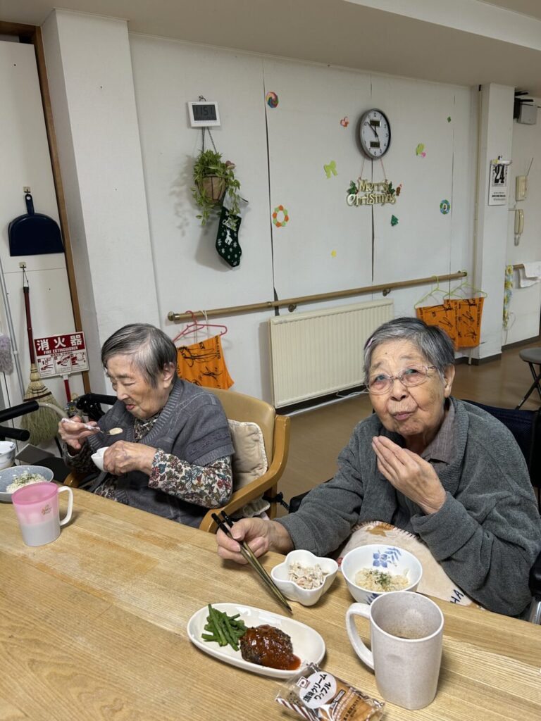 HOME > スタッフブログ > スタッフブログ クリスマスイブのランチ!の話 2025年12月24日 今日はクリスマスイブ🎄 どちらが本番なのかは分かりませんが 今日の給食のランチも何やらそれらしい内容ですこと🎄 美味しそう〜✨ 食べたいな😋 特に それ… どれ? それ😋 クリスマスイブだからかな🧇? あれ、今日のおやつって… 何はともあれ美味しそうで良かったです😊