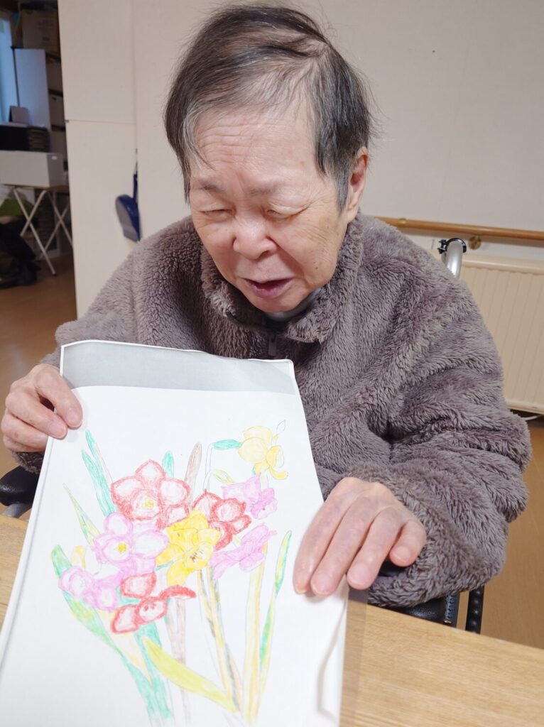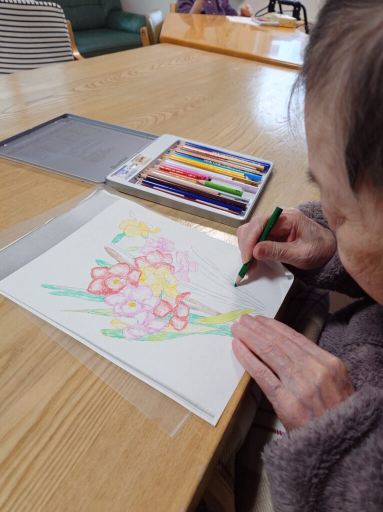 HOME > スタッフブログ > スタッフブログ つくしにて!の話 2026年1月5日 もしもし?📞 「元気だよ😊」 ご家族様から電話がありました〜 「お風呂に入れてもろうでありがたや〜ありがたや〜」👋 「よかったね〜」👋 N様もそうでした〜♨ Y様が塗り絵をしていると目が行ってしまいます👀 「難しいけどね、きちんとしてるからね〜」✨ また見せて下さいませ😉