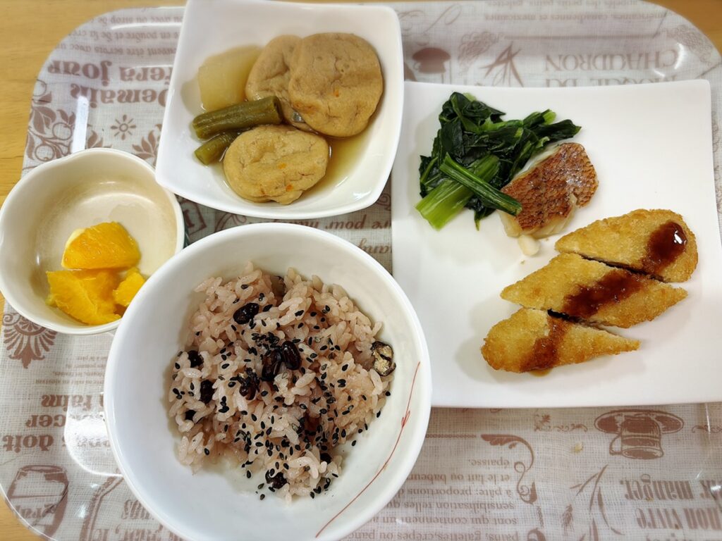 今日の給食はお好み食でお赤飯でした🍚