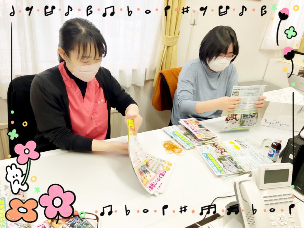 HOME > スタッフブログ > スタッフブログ 頑張ってます!な、話 2026年4月7日 🍄🟫もう少しで昼食ですね〜 さて! 体操しましょう〜💪 皆様頑張っておりました💪✨ 頑張るといえば! とある日の事務所の様子です😊 「私」ひがしまちでスタッフを募集中でして そのチラシのポスティングの準備中でした💪 皆様のお家には届きましたか? 「和」ひがしまちをよろしくお願いします🙏